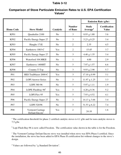 - The stoves deteriorate with use, emission rates for phase 2 stove models in original tests are not representative of emission levels of the same stove models in homes after extended use. Preliminary analysis of table 3-12 of the report seems to indicate that on average the EPA Certified 'phase II' wood stoves are 175% dirtier than they were certified to be. (See Chart 3-12 below.)